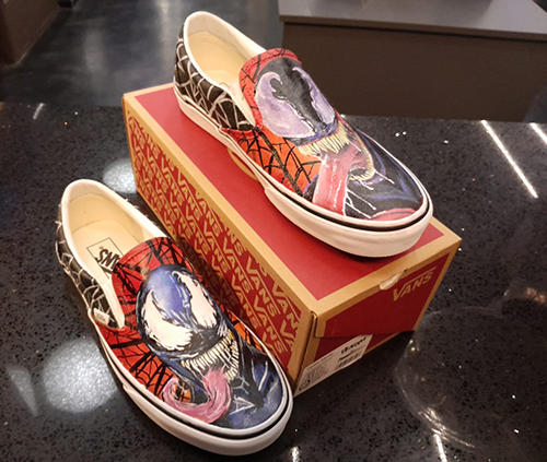Hand painted by our own Giselle Naidoo, these hand painted shoes will be a jaw dropper the next time you step out. Waterproofed and sealed for durability, there is no risk of the artwork washing away or fading.
